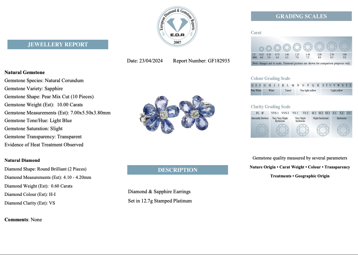 They are accompanied by a full gemmological report issued by E.D.R. in London.