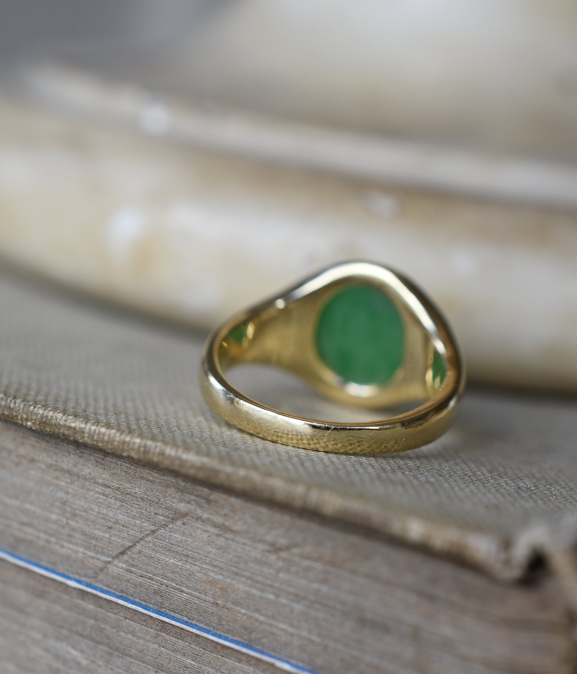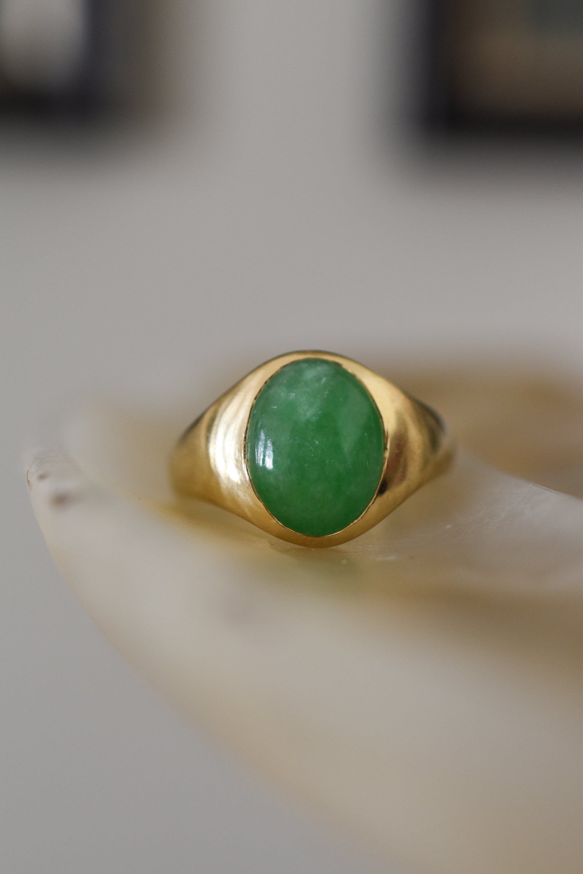 3ct Natural Untreated 'Type A' Jade Signet Ring in 18K Yellow Gold