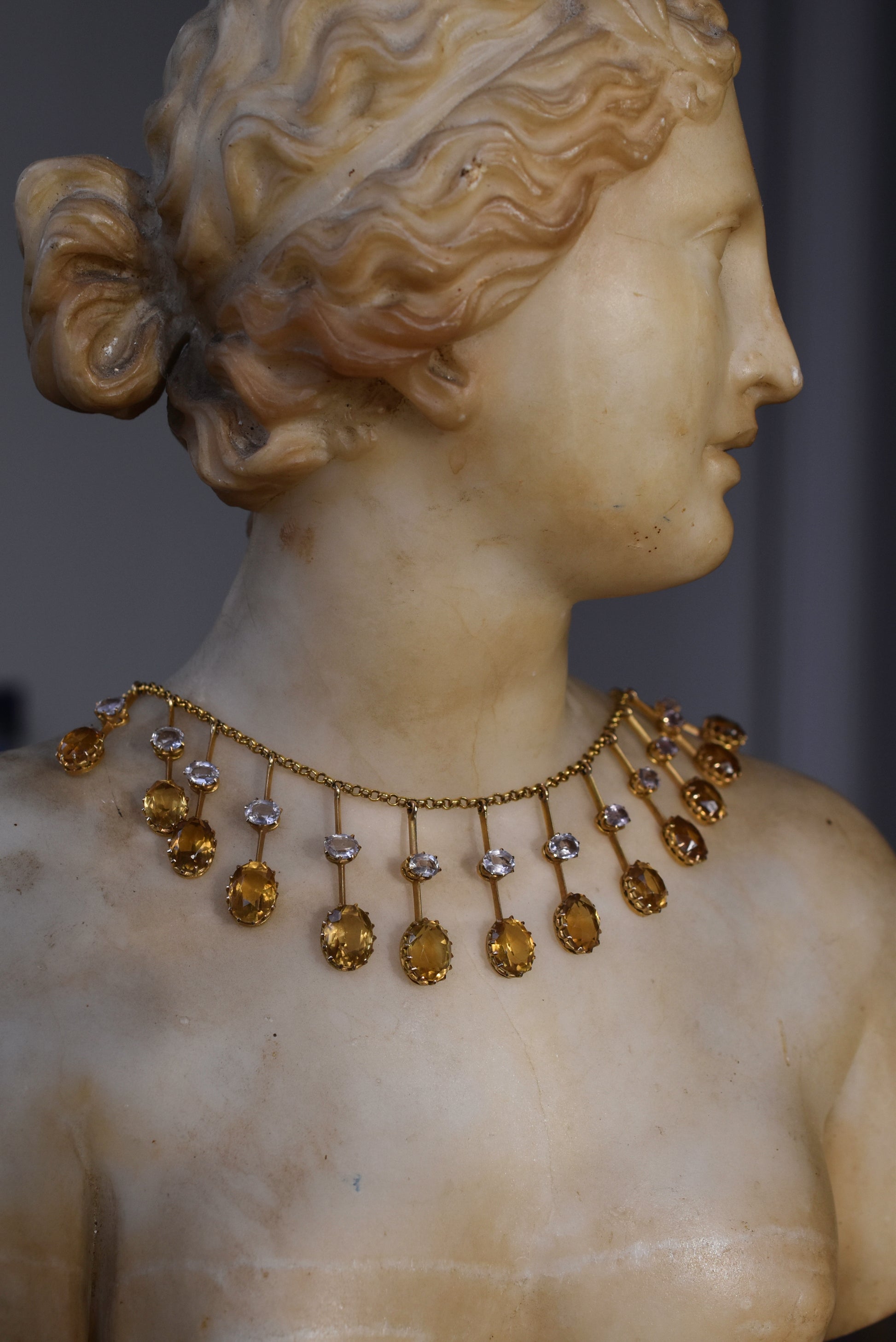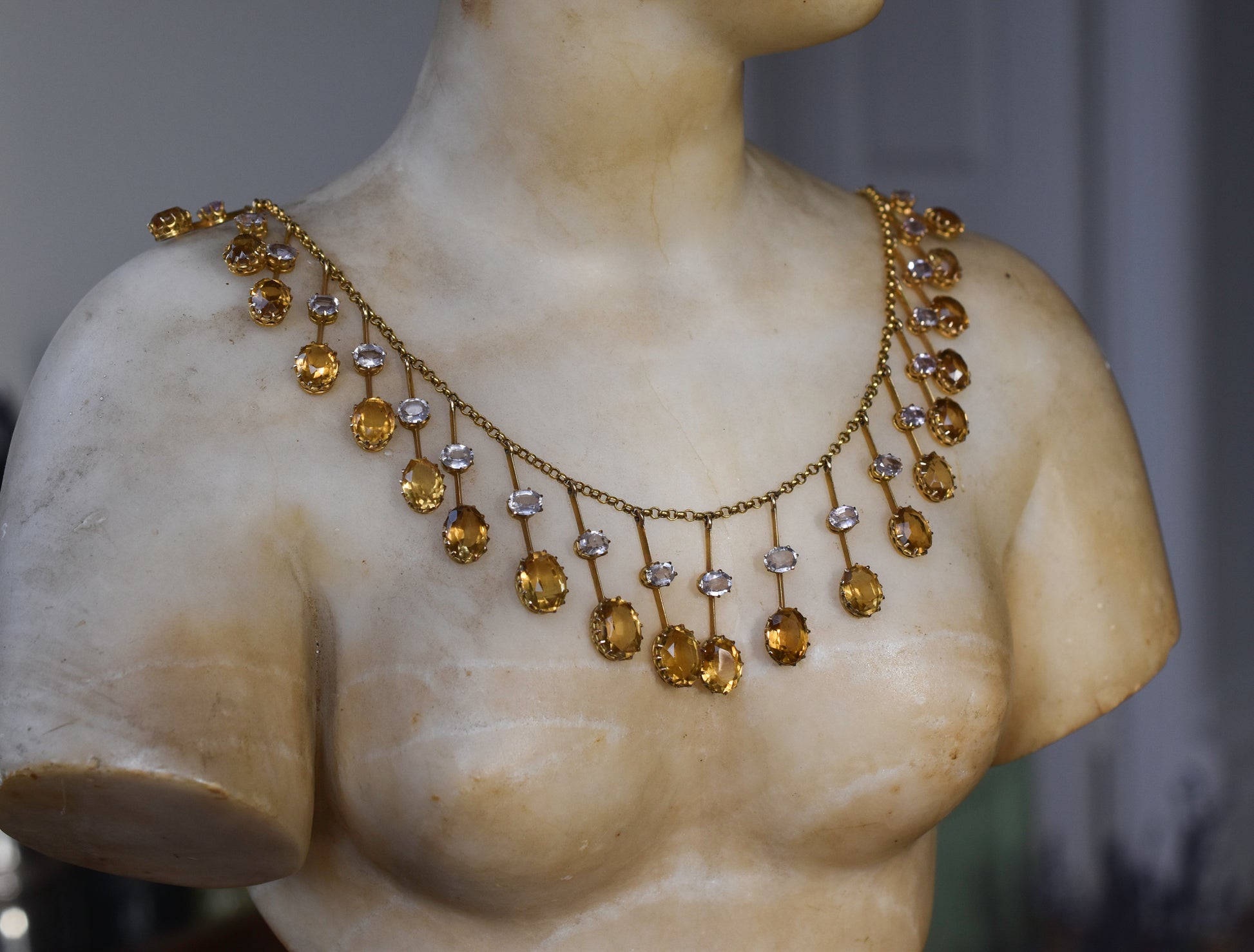 In overall good condition with some minor wear commensurate with age. All stones have been thoroughly checked and are secured in their settings. Both topaz and citrines are well matched.