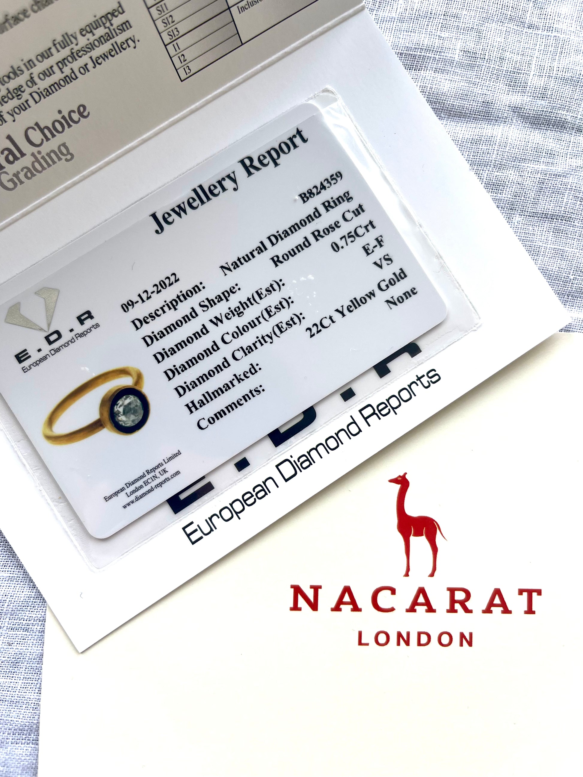 The ring will be accompanied by a Full Jewellery Report by E.D.R. London.