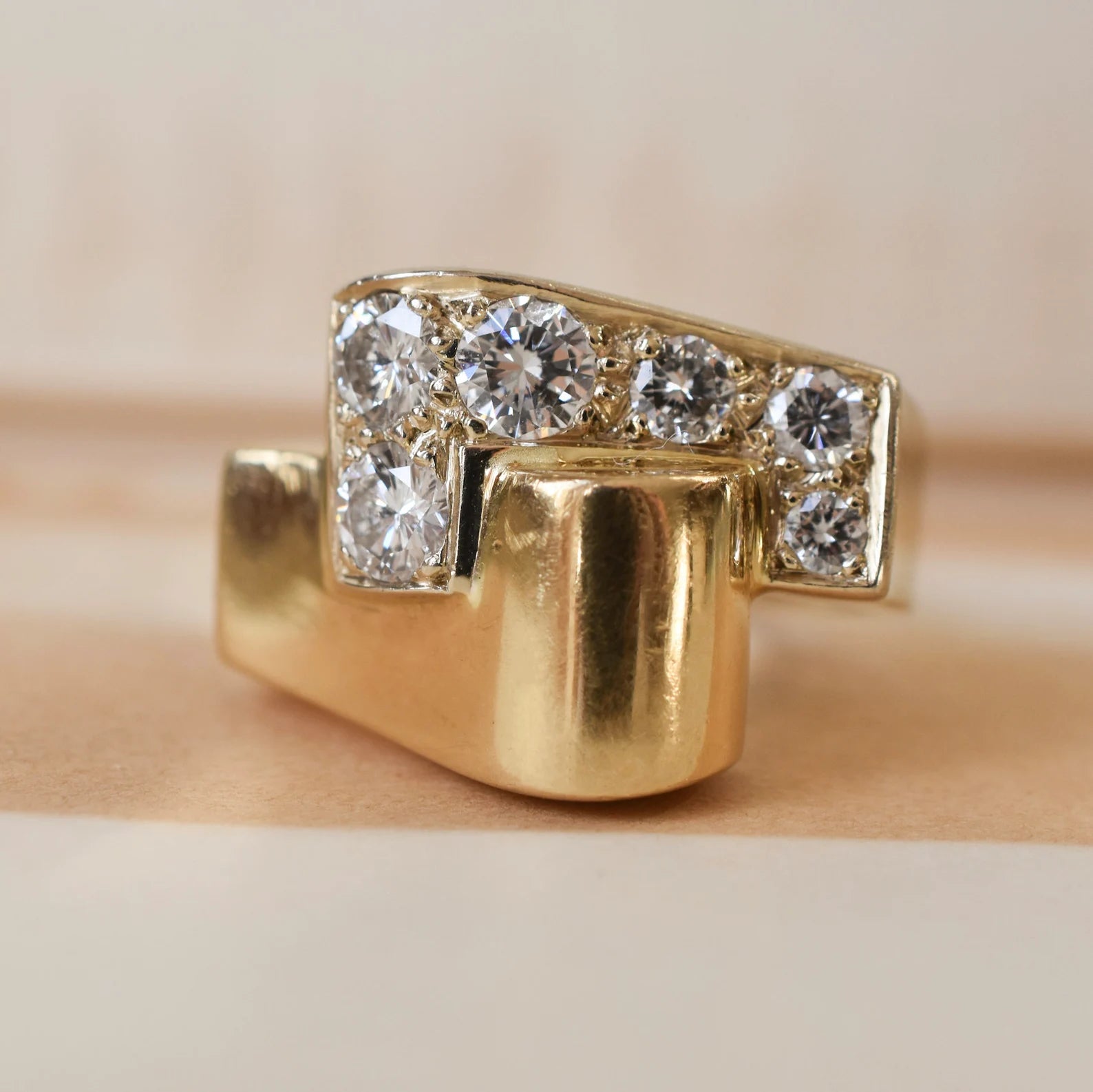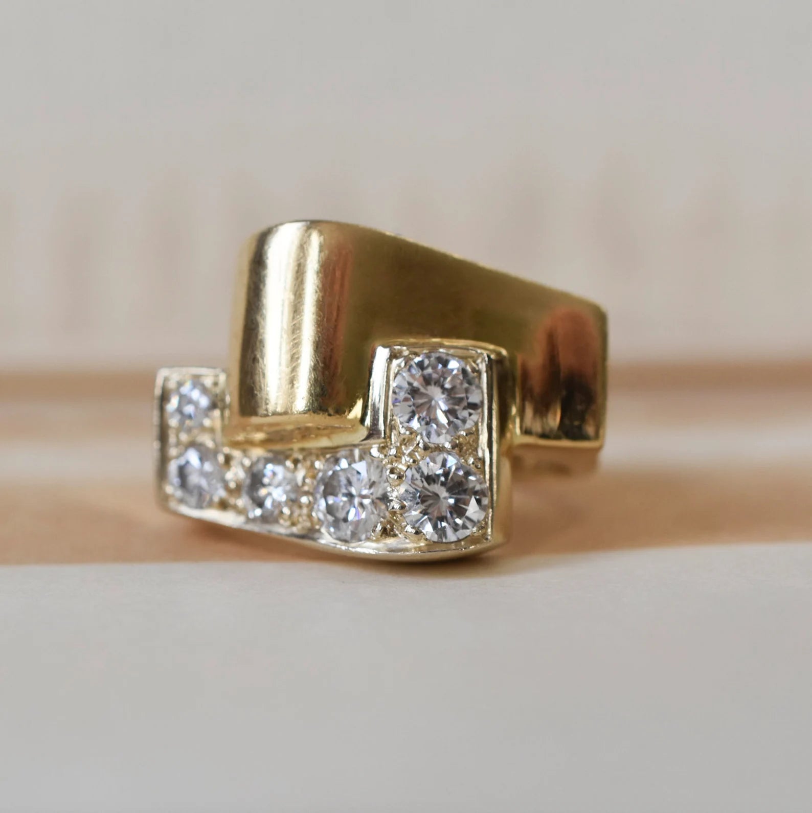 Mid Century French Asymmetrical Diamond Dress Ring in 18ct 18k yellow Gold