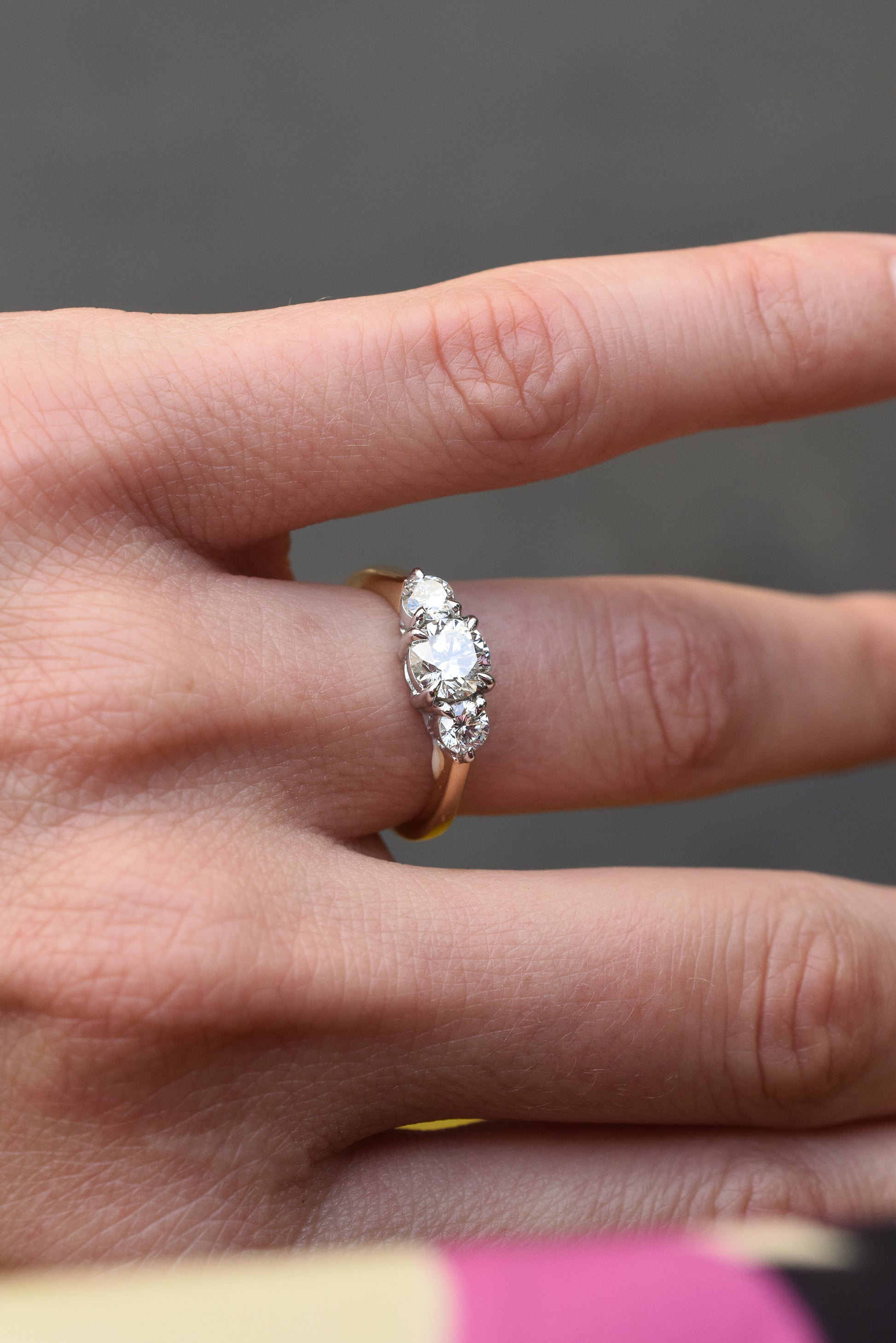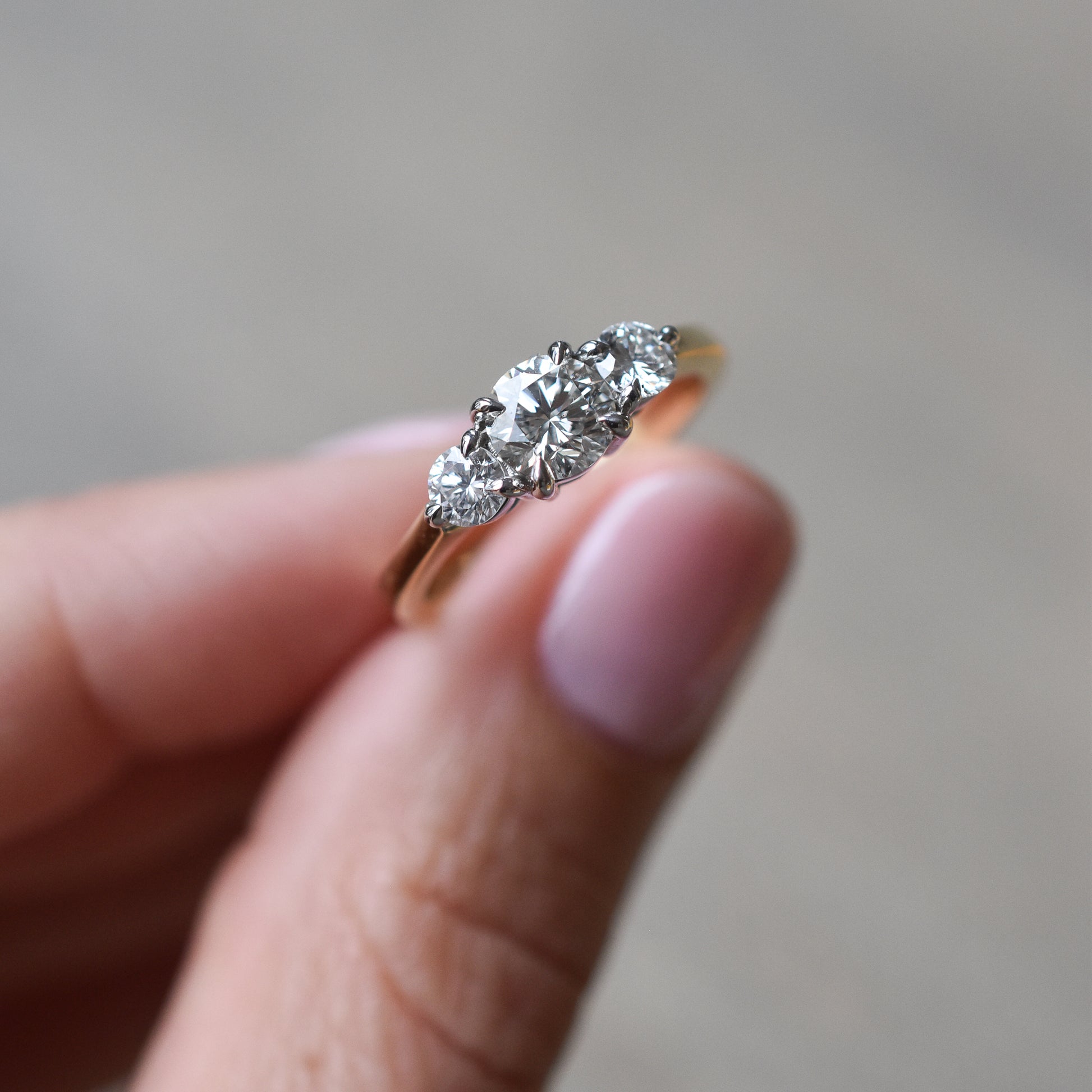 Vintage 1.15ct Diamond Trilogy Engagement Ring in 18k Yellow Gold