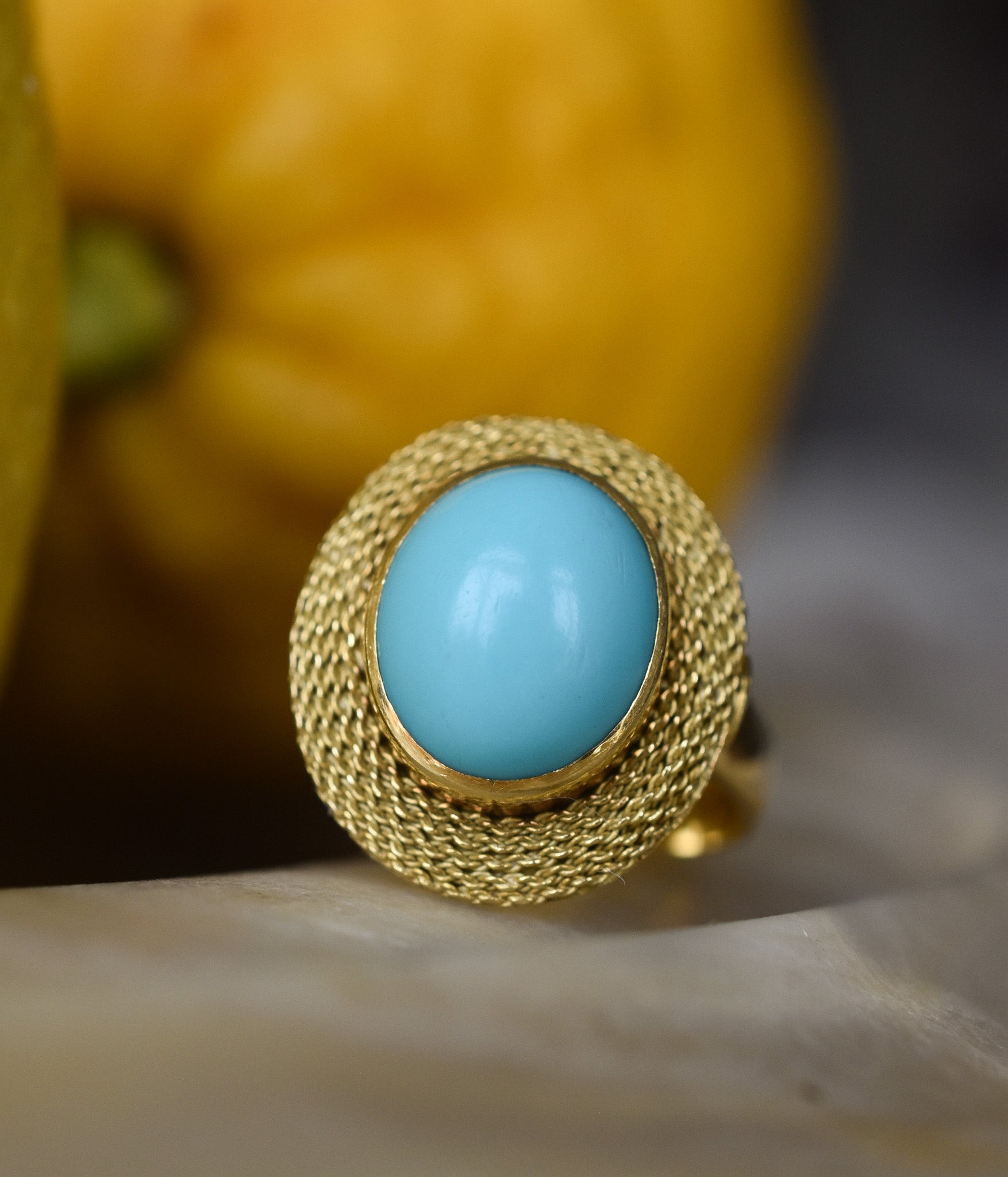 Vintage Italian Turquoise and 18K Yellow Gold Statement Ring