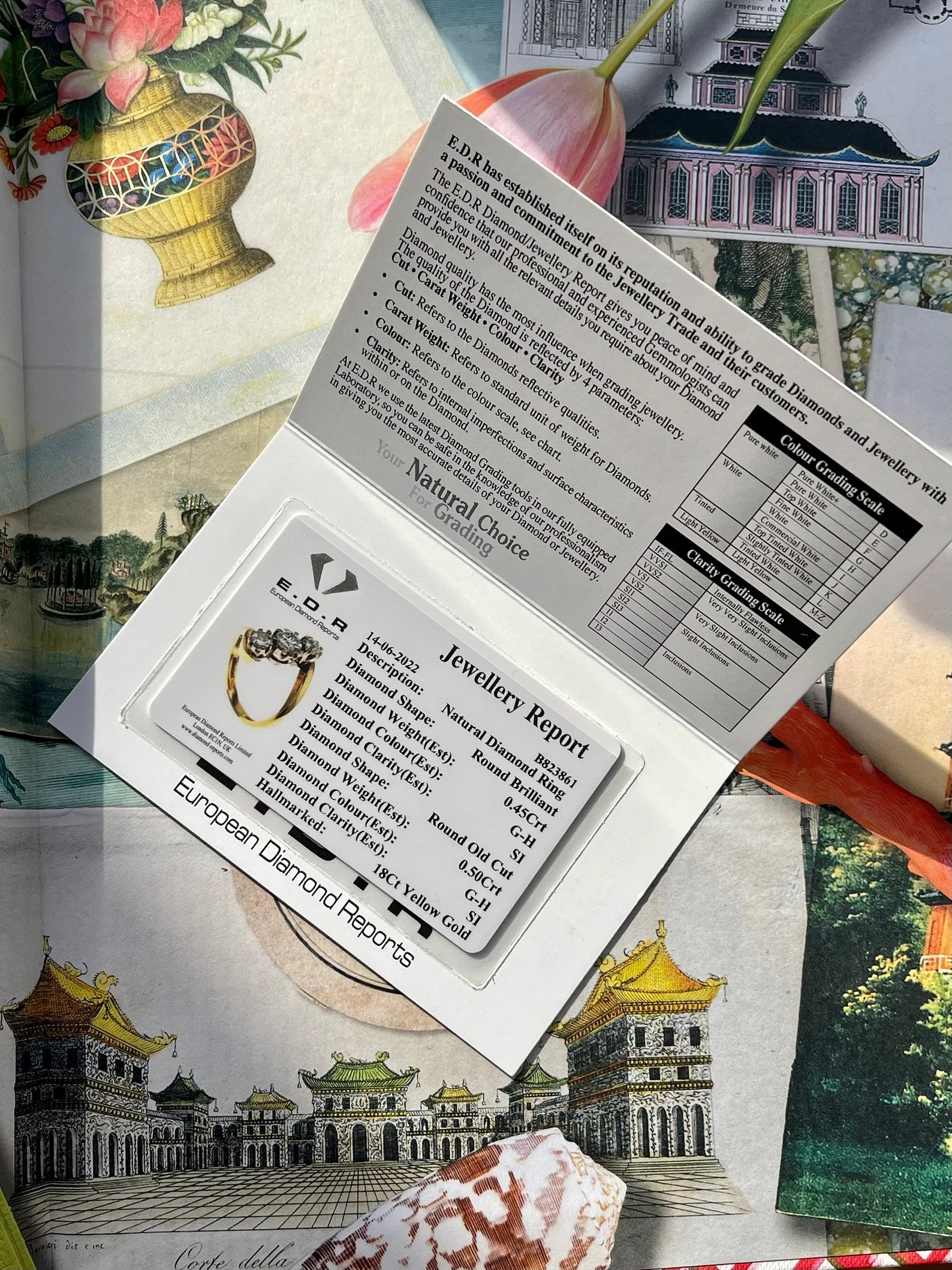 The ring is accompanied by an Identification Report issued by E.D.R. in London.